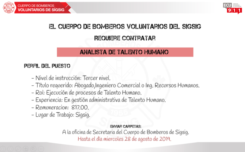 El Cuerpo de Bomberos Voluntarios del Sígsig, mediante la presente, busca CONTRATAR UN ANALISTA DE TALENTO HUMANO MISIÓN Administrar la Gestión de Talento Humano en el […]